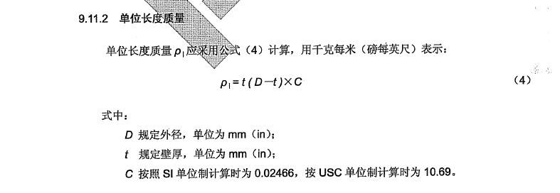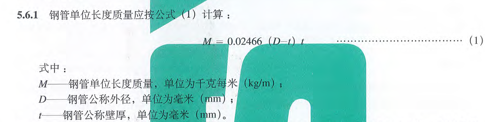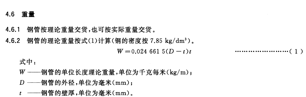 W------鋼管的單位長(zhǎng)度理論重量,單位為千克每米(kg/m),也有用ρ或M表示的;
